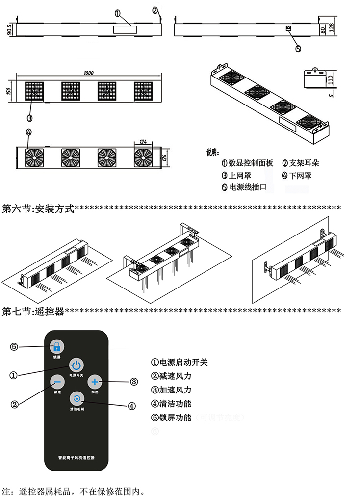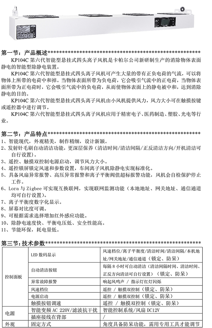 KP104C第六代智能型懸掛式四頭離子風(fēng)機(jī)