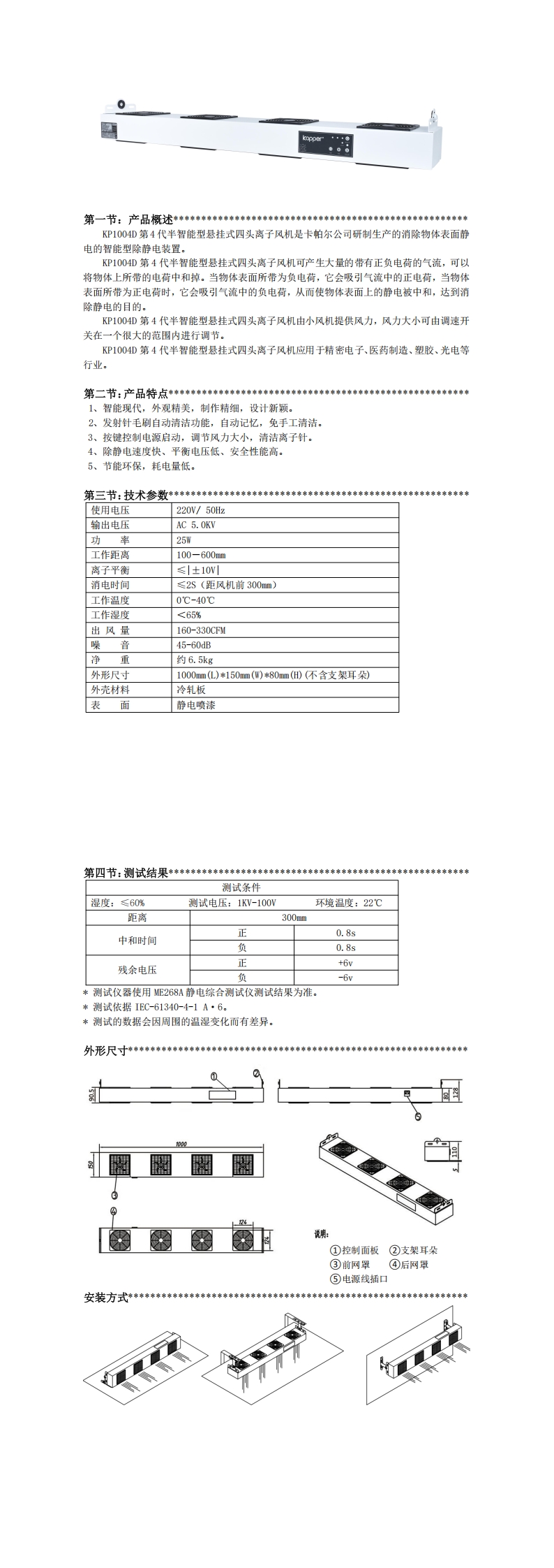 KP1004D第4代半智能型懸掛式四頭離子風(fēng)機(jī)