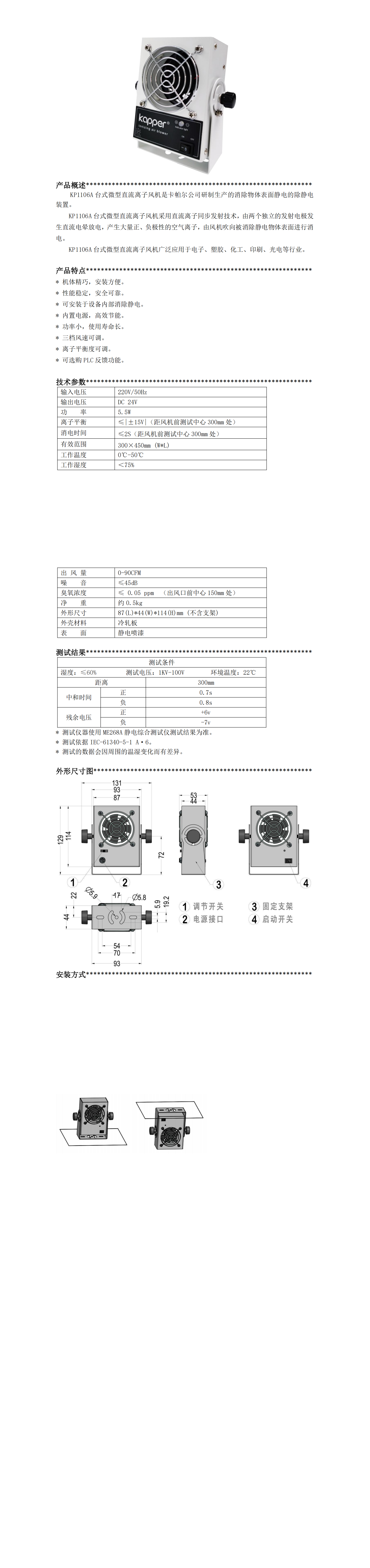 KP1106A 臺式微型直流離子風(fēng)機(jī)