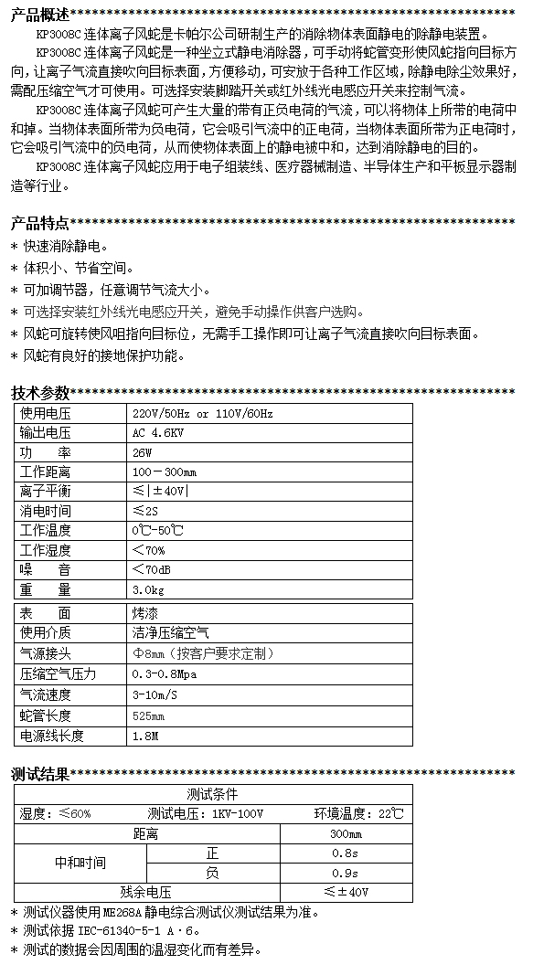 KP3008C第三代連體離子風(fēng)蛇