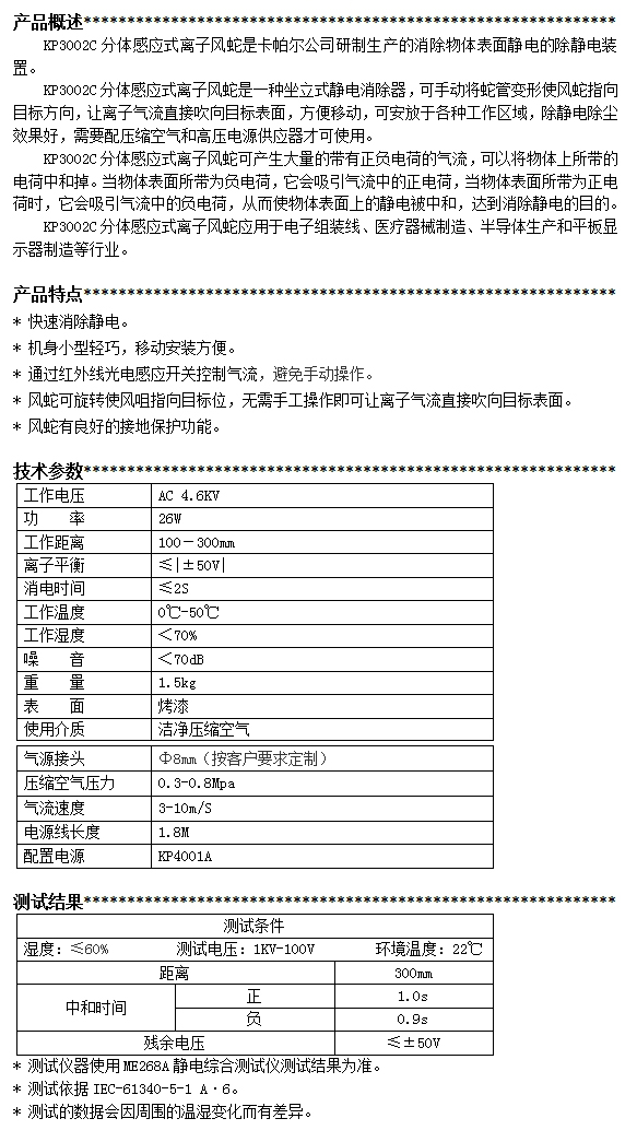 KP3002C第三代分體感應(yīng)式離子風(fēng)蛇