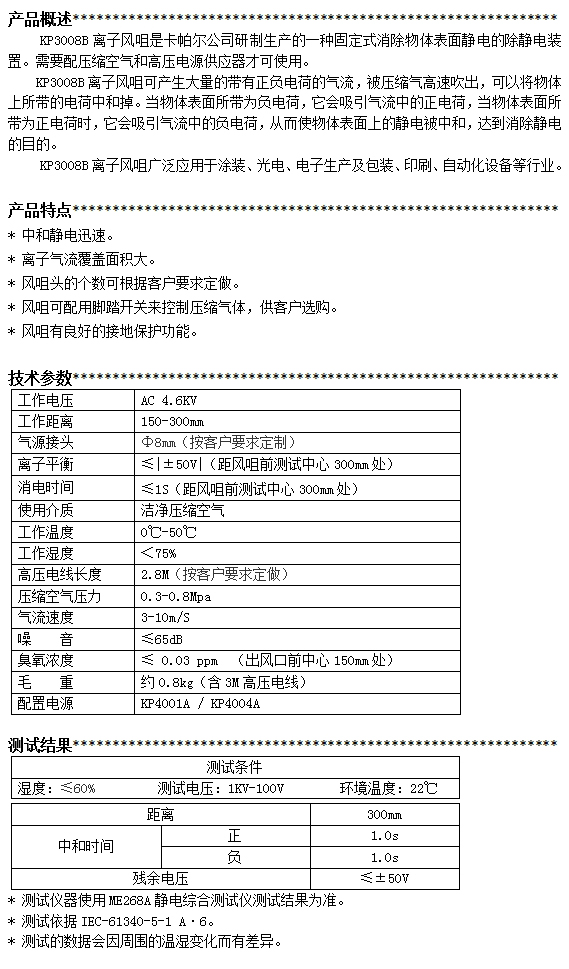 KP3008B第三代排形離子風(fēng)咀
