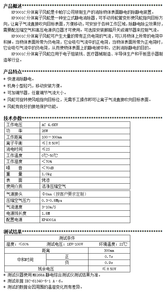 KP3001C第三代分體離子風(fēng)蛇