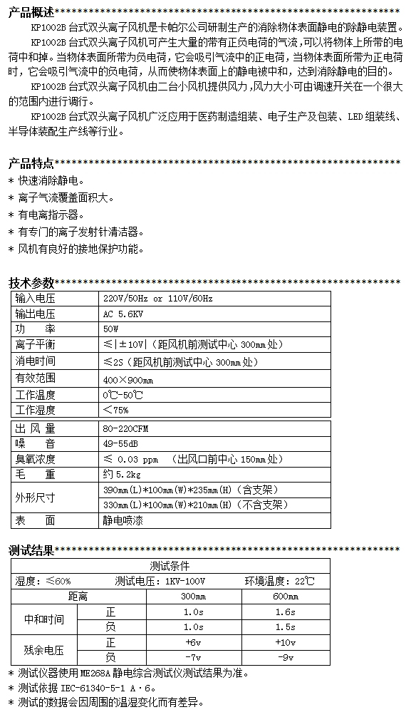 KP1002B第三代臺式雙頭離子風(fēng)機