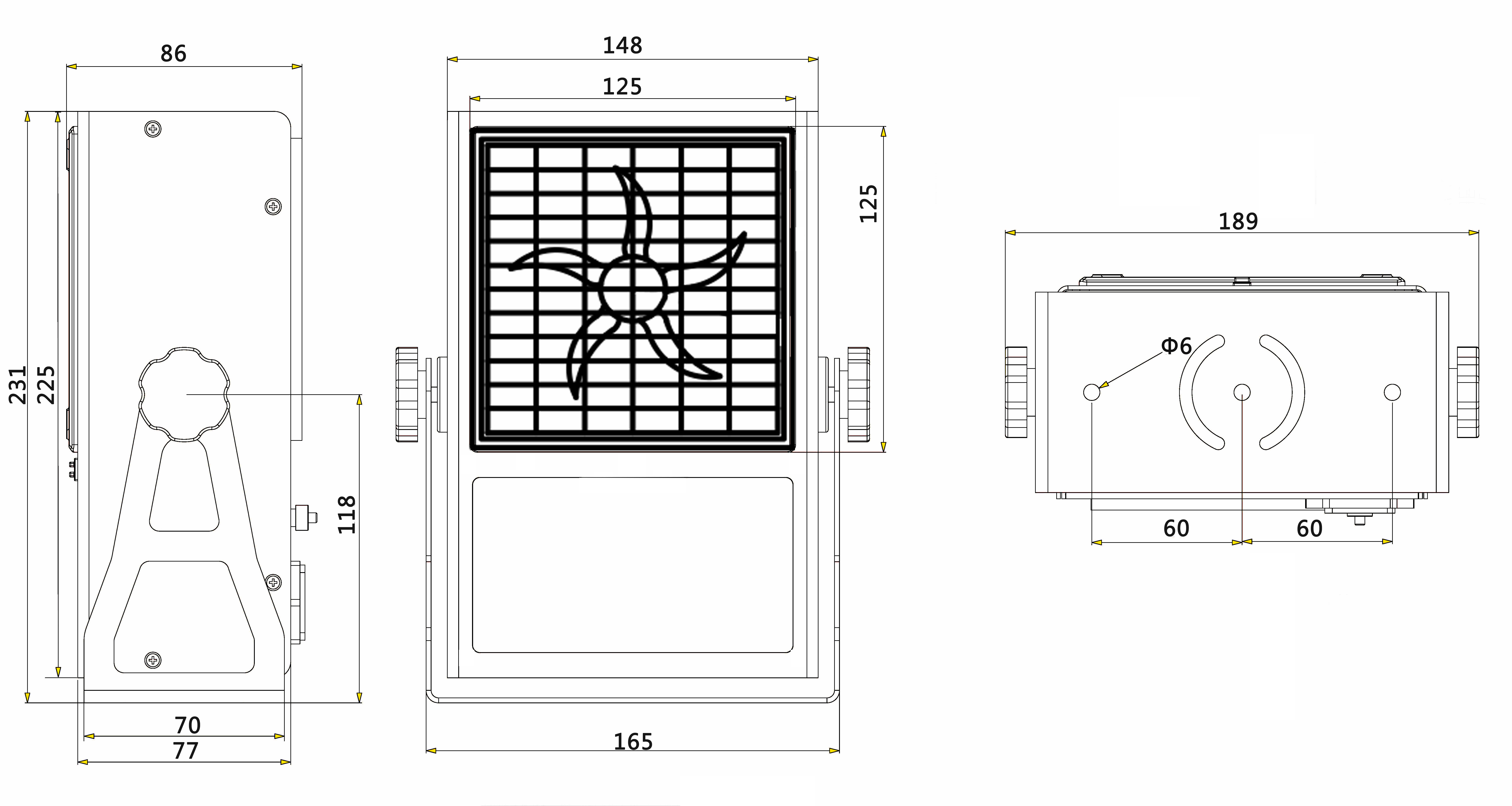148mm(L)*77mm(W)*225mm(H)(不含支架) |